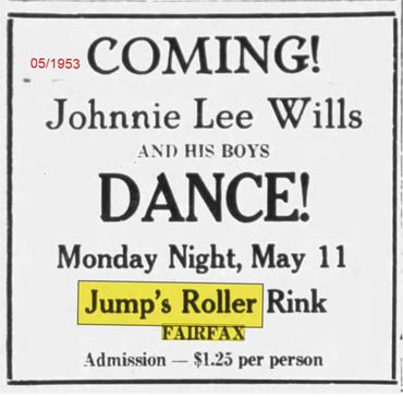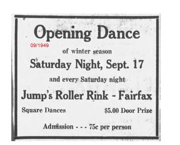 Jump’s Roller Inn Cafe was a skating rink/dance hall that operated in Fairfax from 1946 to 2011, operated by three generations of the Jump family. It was widely recognized as one of the best steakhouses in the state, and at its heyday, would regularly draw a crowd of more than a thousand people to listen to live music performances.